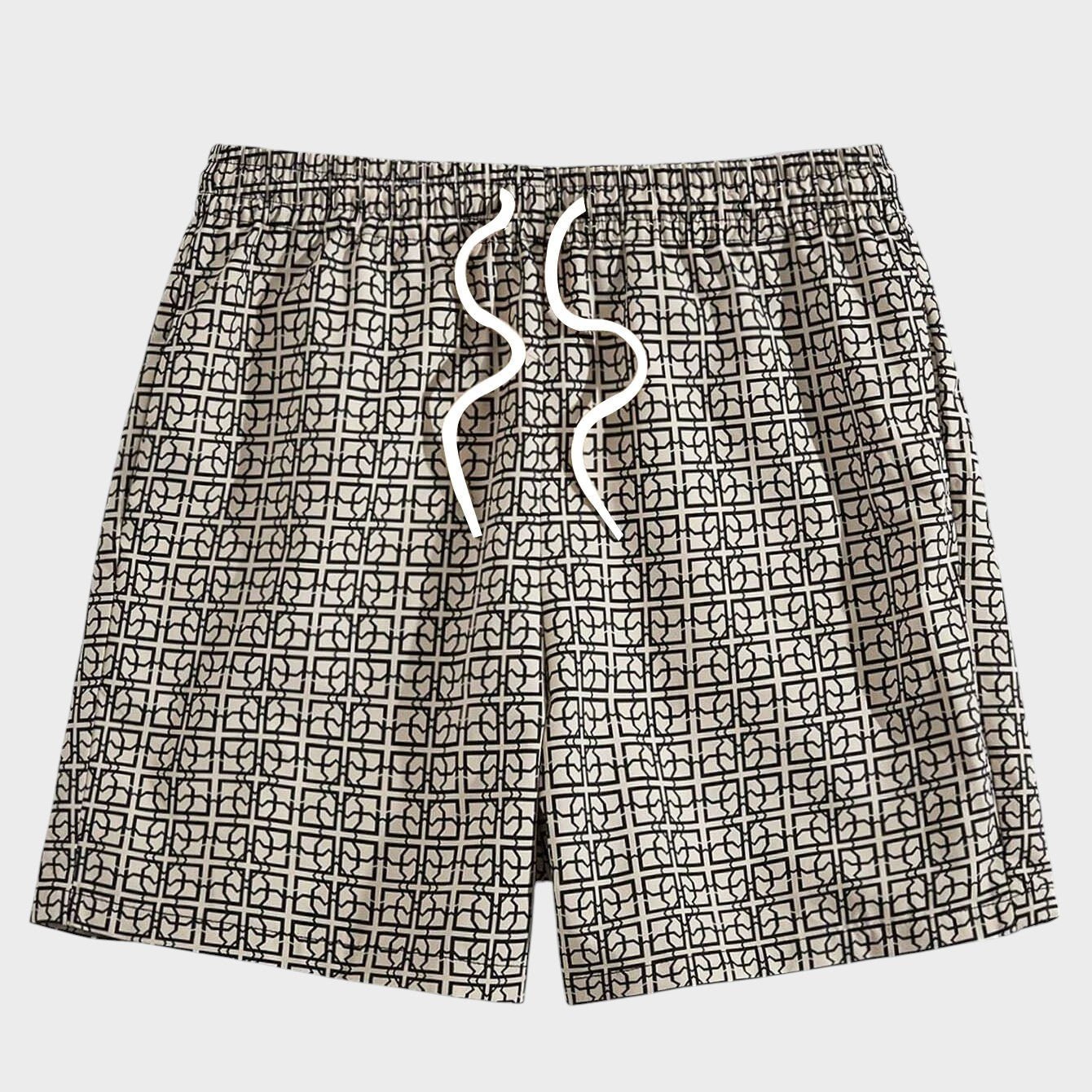 Platno udobnosti s ritmom retro stila. Ovi kratki hlače s geometrijskim uzorkom spajaju ležernu krojačku izradu sa sunčanošću osobnosti – dizajnirani za dane koji ne prate raspored.