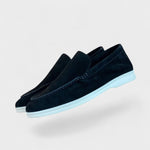 Ove muške cipele spajaju diskretnu eleganciju s potpunom udobnošću. Baršunasti završni sloj i slip-on dizajn osiguravaju praktičnost za svakodnevno nošenje bez gubitka sofisticiranog dojma. Kontrastni đon daje im moderan izgled, idealan za sve – od ležernog, chic stila do formalnijih kombinacija.
