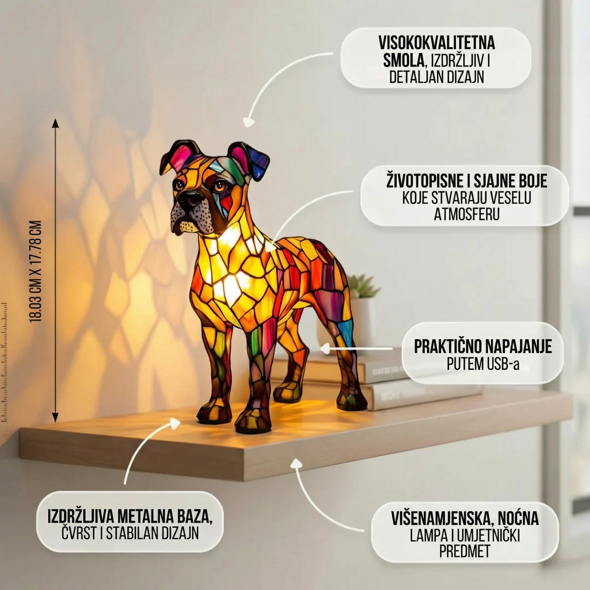 Prekrasna lampa! Pas mops izgleda još ljepše uživo. Dostava je bila jako brza.