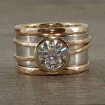 Vintage intarzirani stakleni zlatni i srebrni prsten