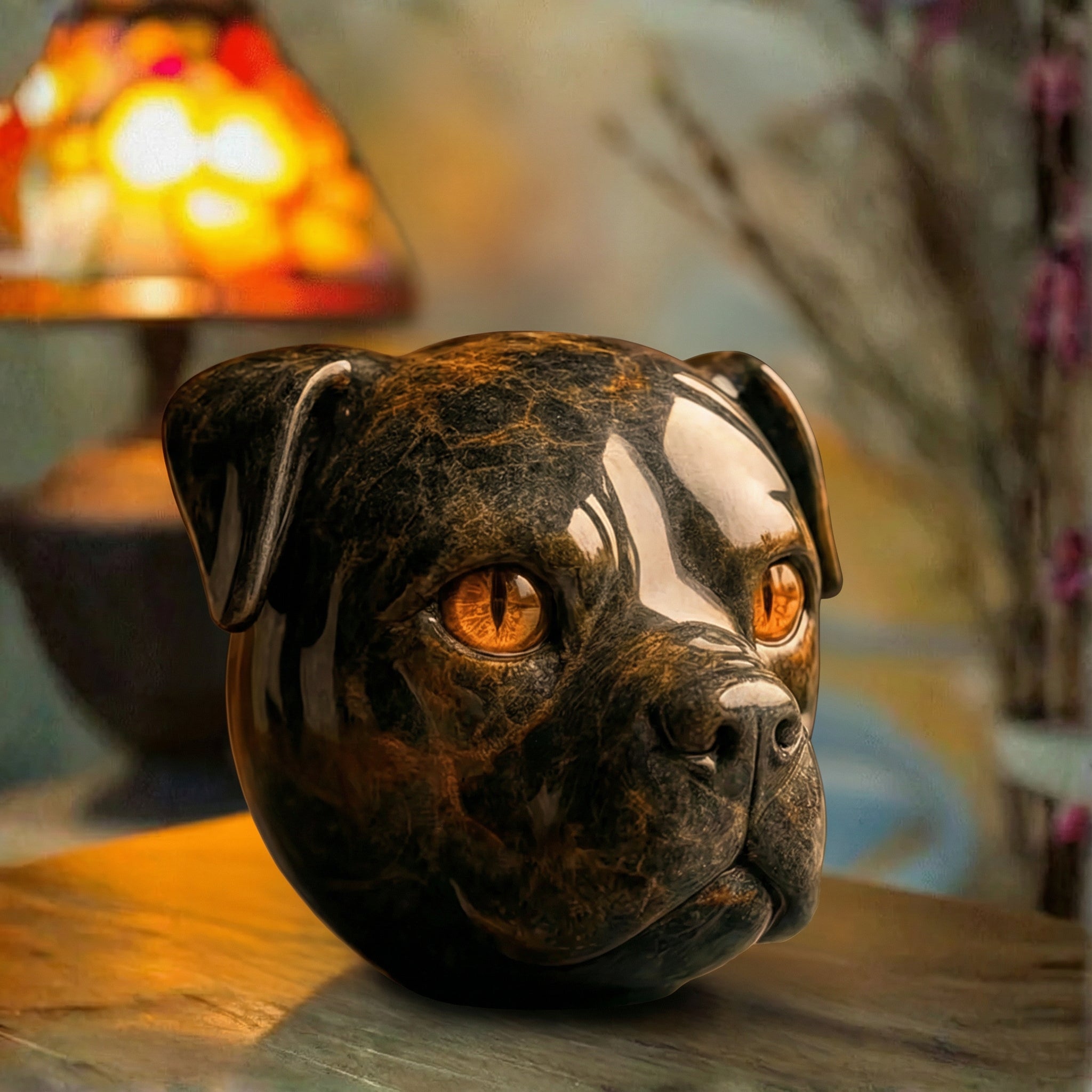 • Prodoran dizajn u obliku pasjeg oka - Preuveličane bademaste oči su središnja točka ove skulpture, koja odmah privlači pažnju svojom intenzitetom. Dubina oko očnih šupljina daje pasjoj glavi gotovo realističan izgled. Savršeno balansira između misterije i elegancije