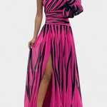 Haljina koja jednostavnost pretvara u stilsku izjavu. Valentina kombinira privlačnost asimetričnog dizajna s jednim ramenom i uzorak mekih pruga koji produžuju figuru i donose dinamiku. Lagana, fluidna i puna prisutnosti, idealna je za prilike kada želite istaknuti sofisticiranost bez napora.