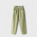 Izrađene od lana, ove hlače spajaju svježinu prirodnih materijala s jednostavnim i elegantnim dizajnom. Ravni i lepršavi kroj omogućava lagano nošenje, dok elastični pojas osigurava savršeno pristajanje. Osnovni komad za toplije dane, savršene za ležerne i sofisticirane kombinacije u isto vrijeme.