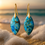 Naušnice Avelina hvataju čaroliju plaže Elafonissi na Kreti, gdje more mijenja svoju boju u zelenu. Sjajna tirkizna boja, protkana zlatnim i pješčanim žilicama, odražava kristalno čistu vodu koja dodiruje ružičastu obalu. Ovi kamenčići dodaju svakom izgledu svjetlost i dubinu.