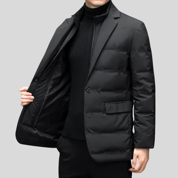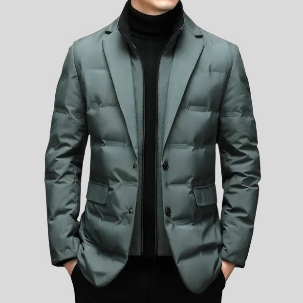 Ovaj sako spaja sofisticirani šarm klasičnog kroja s funkcionalnošću modernog kaputa. Prošivena struktura pruža toplinsku udobnost bez gubitka elegantne siluete, što ga čini savršenim i za formalne prigode i za svakodnevni urbani stil. Savršen balans između stila i praktičnosti.